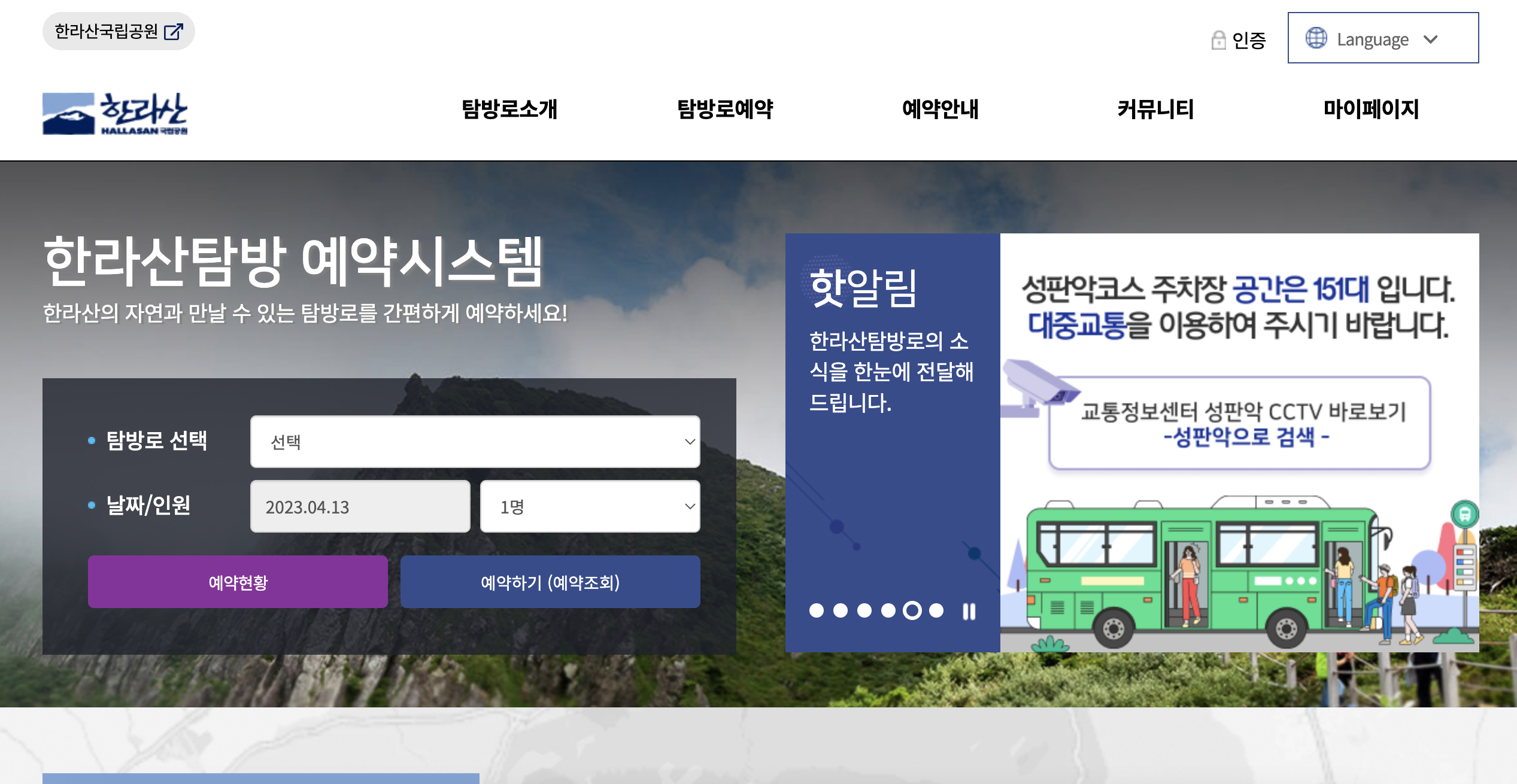 아래 링크를 통해 한라산 탐방 예약으로 바로 이동하실 수 있어요!